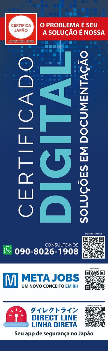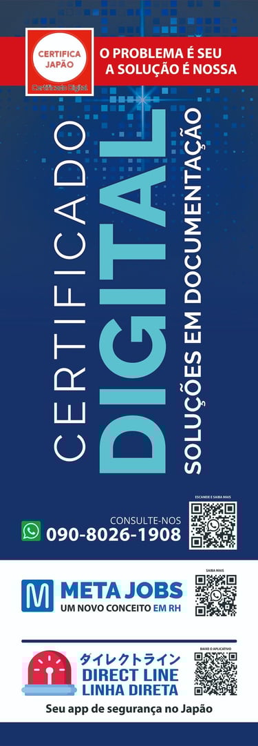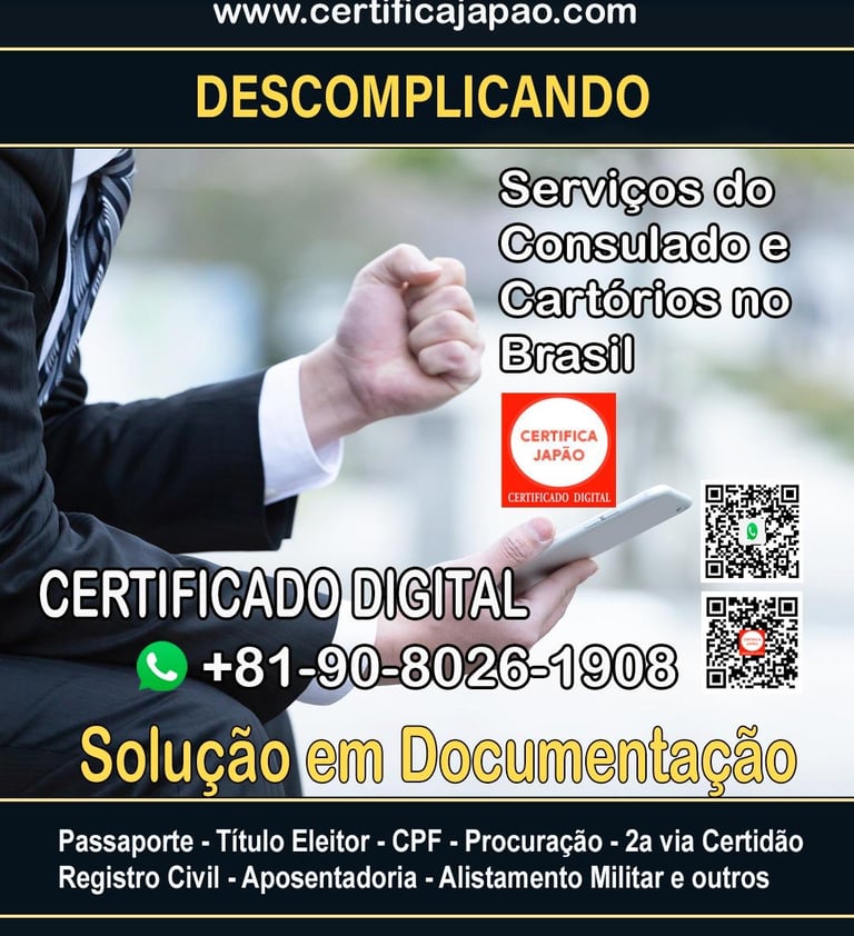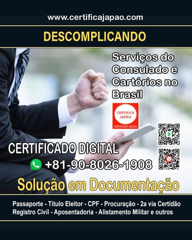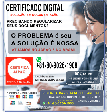 A Certifica Japão é empresa licenciada para a emissão do Certificado Digital no exterior, através da Empresa Valid Certificadora - ICP-Brasil - Certdata.